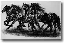 Friesen Stuten Kohle 60cm x 80 cm 400.-